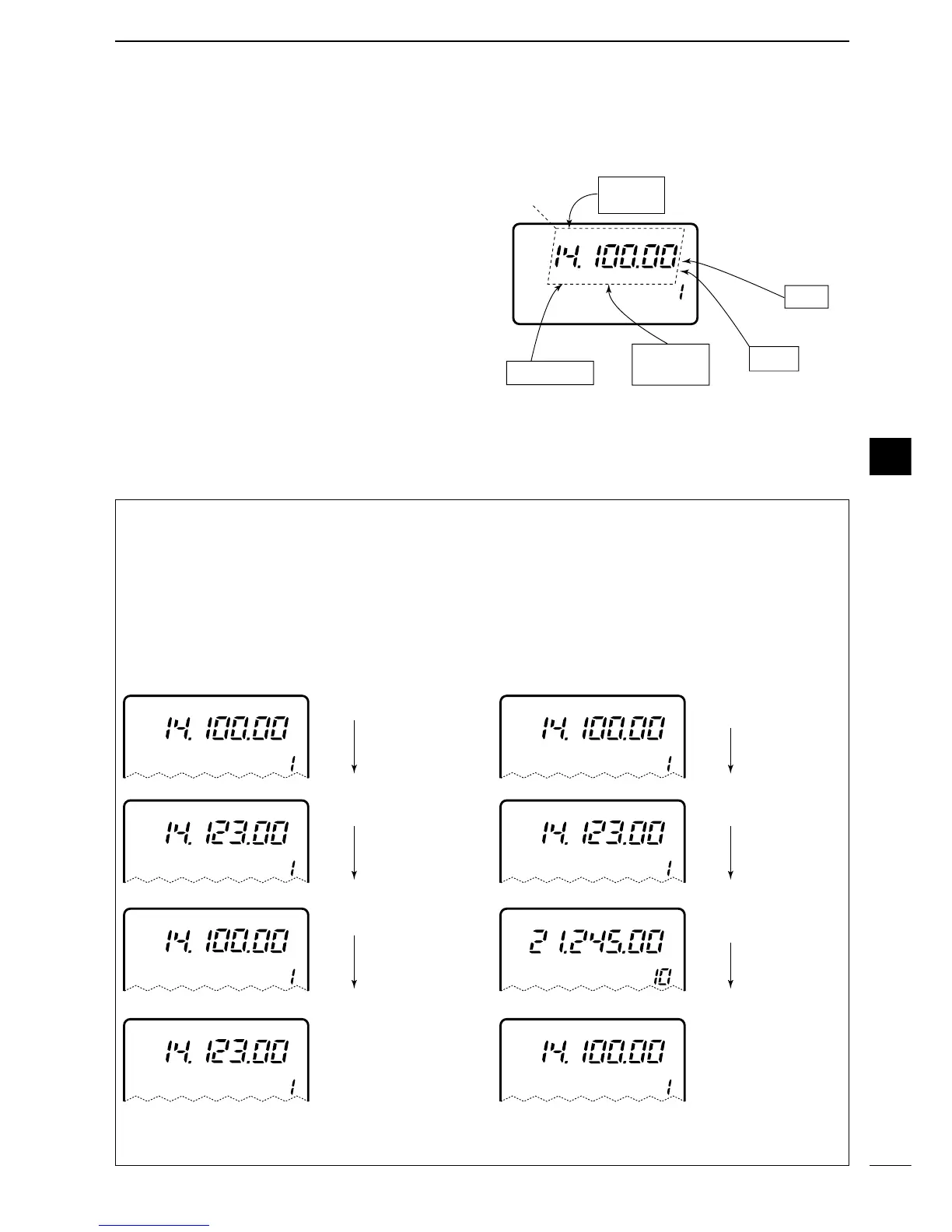 Changed frequency (14.123 MHz) appears. Changed frequency (14.123 MHz) does not appear and
