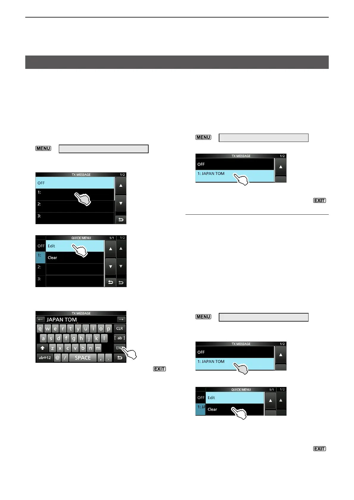 1. Open the TX MESSAGE screen.
