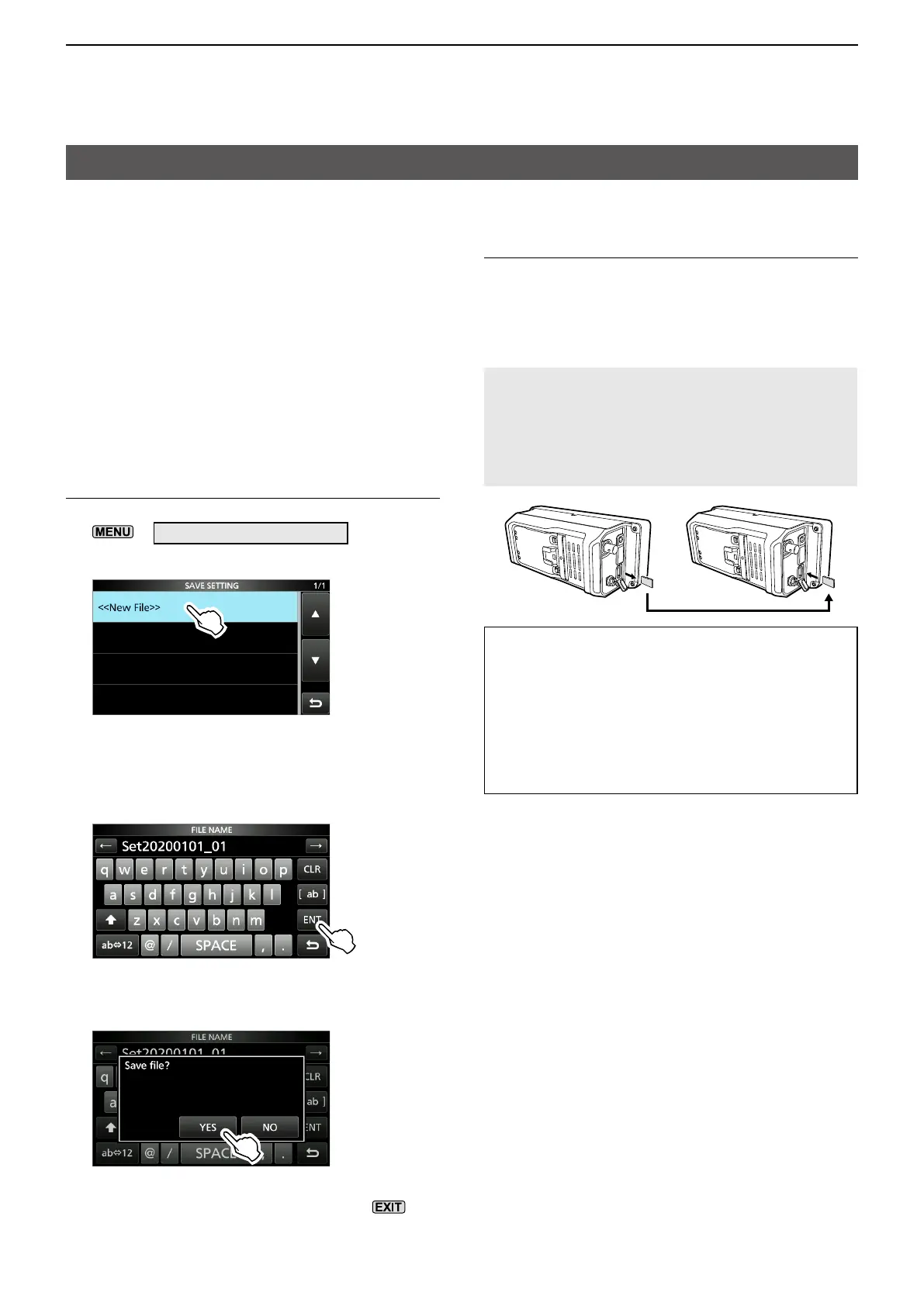 • DO NOT turn OFF the transceiver while saving or