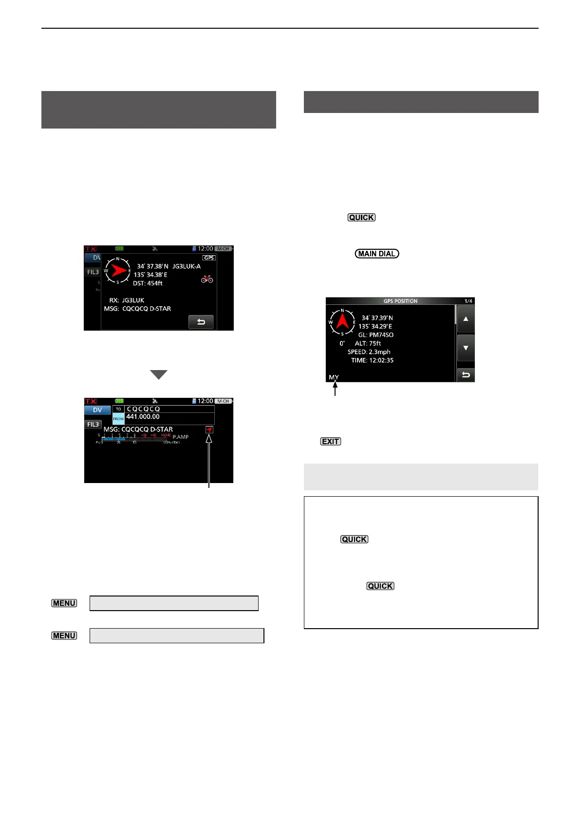 • If you transmit with the GPS POSITION screen