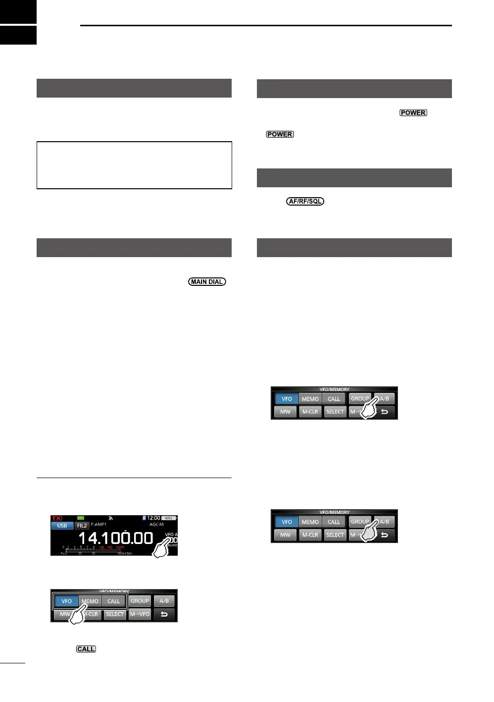 2. Touch [A/B] to select the VFO A or VFO B.