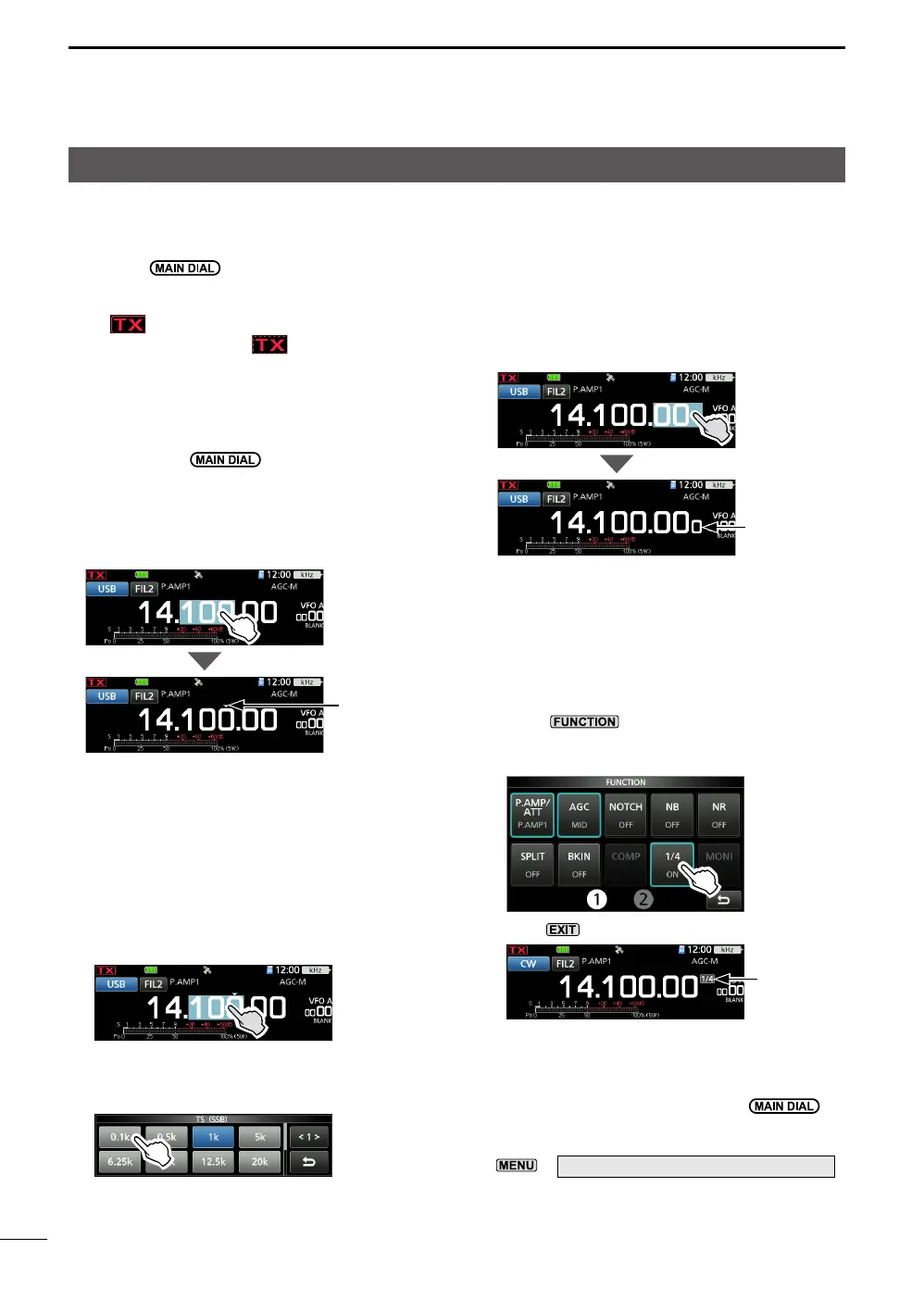 Touch the kHz digits to turn the Tuning Step