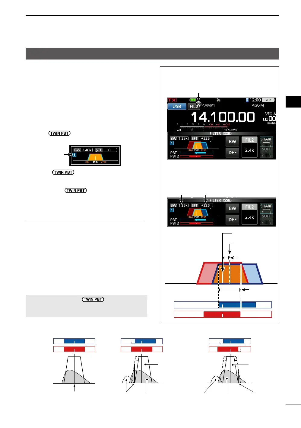 • To shift the IF left or right, set “PBT1” and “PBT2”