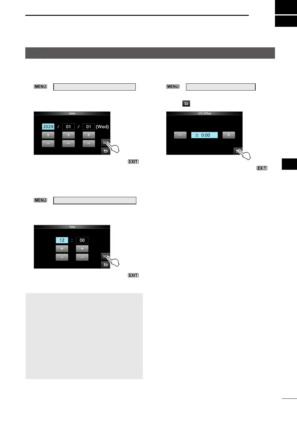 SET > Time Set > UTC Offset