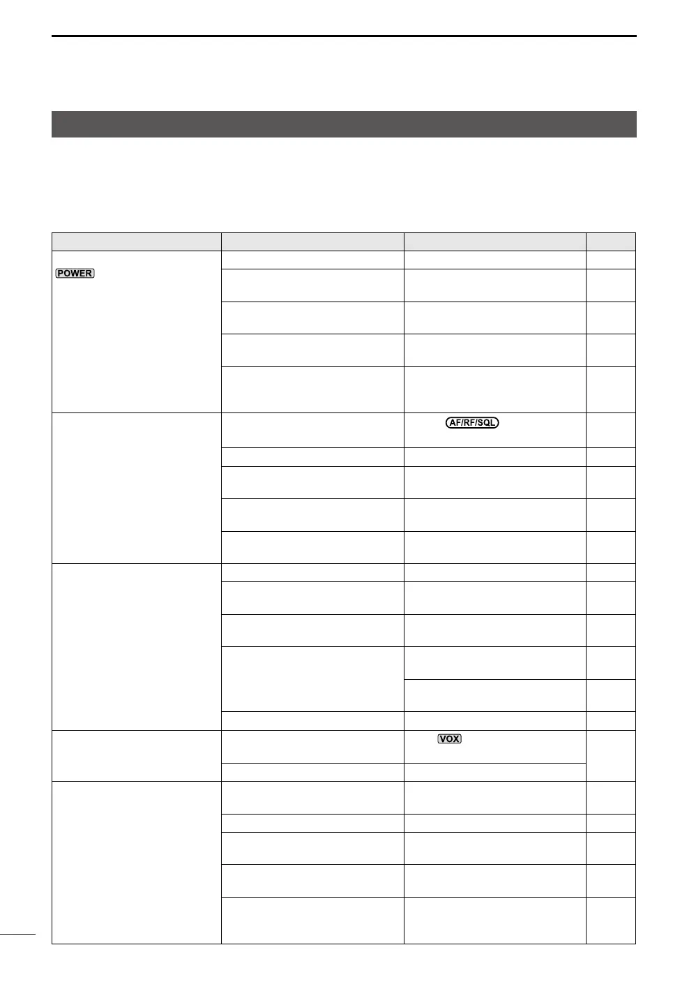 The squelch is closed. Adjust the squelch level. p. 3-8