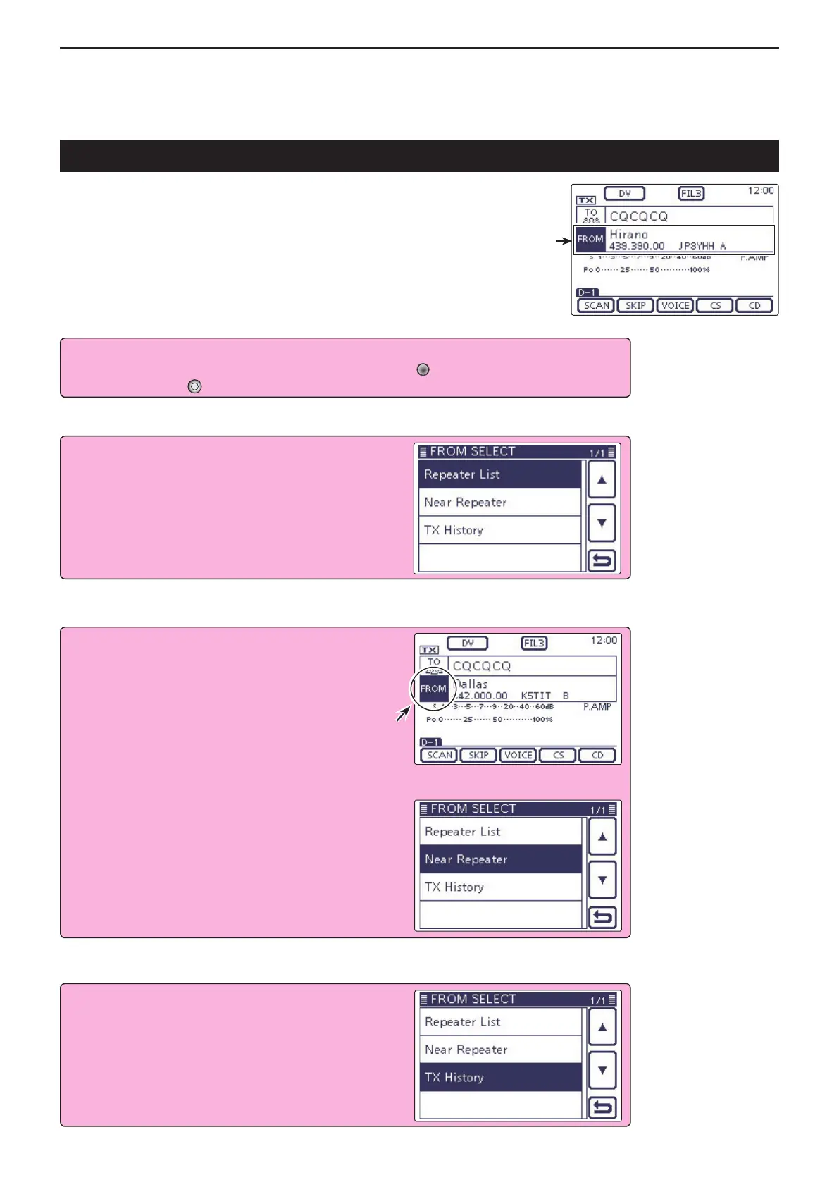 Select the preset repeater by rotating the Dial or [M-CH] (L) on the DR mode screen.