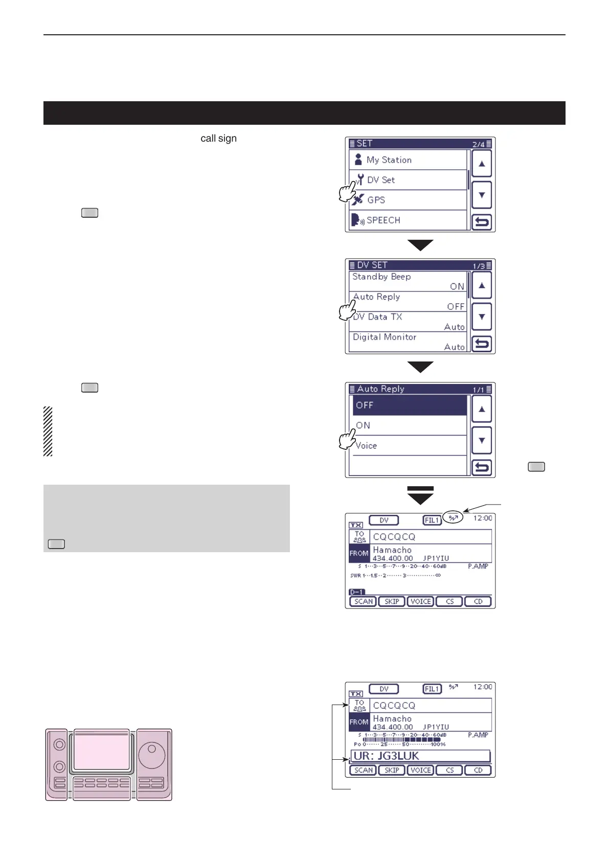 Touch the “Auto Reply” item of the “DV Set” Set w