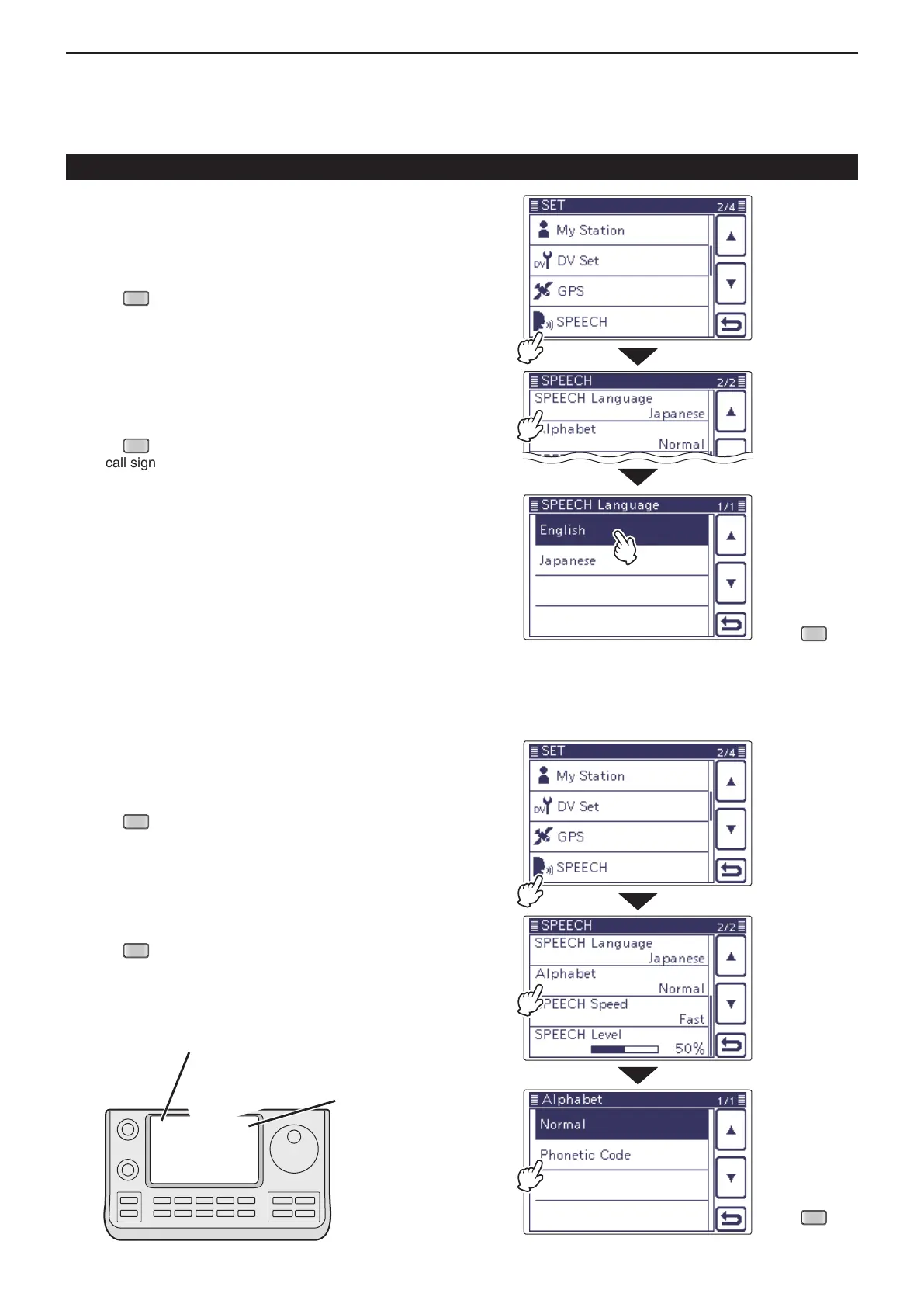 Touch the “SPEECH Language” item of the “SPEECH” w