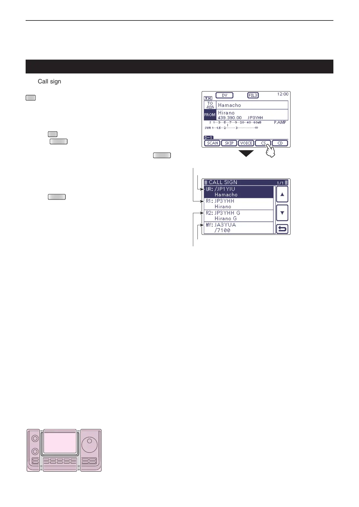 • The CALL SIGN screen can be displayed in the DR, VFO,
