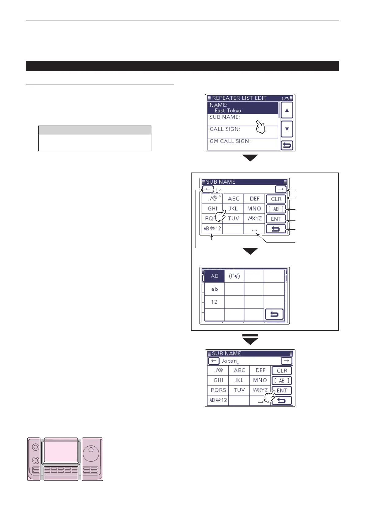 !1 Touch “SUB NAME” to enter the repeater sub name