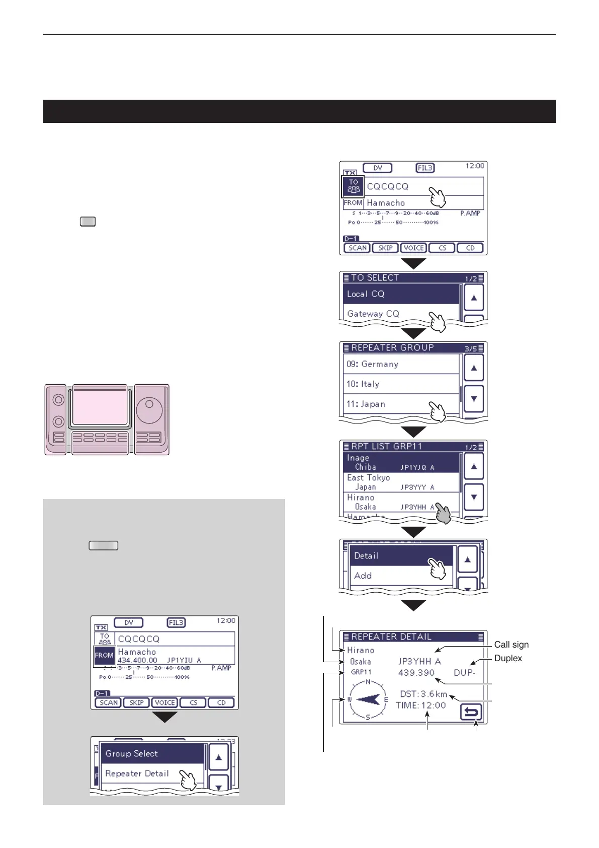 Example: Shows the “Hirano” repeater detail screen