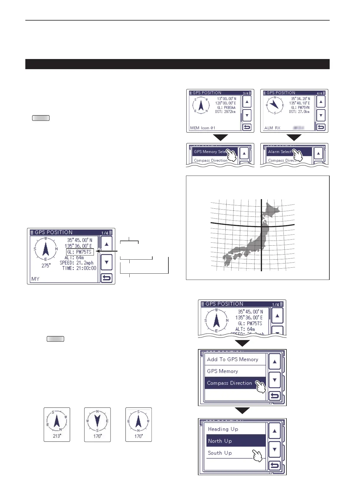 Touch [ e ∫]/[√](D) to change the GPS memory and