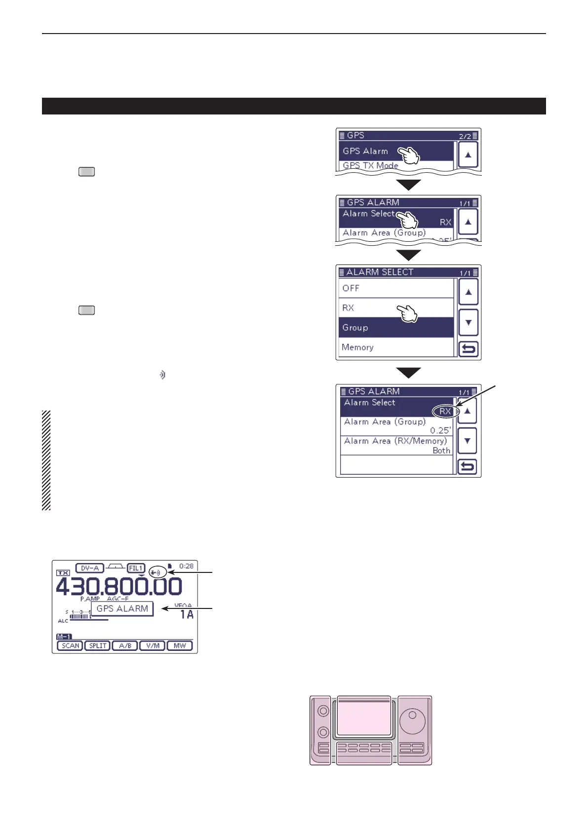 • When the GPS alarm beeps, “GPS ALARM” pops up on