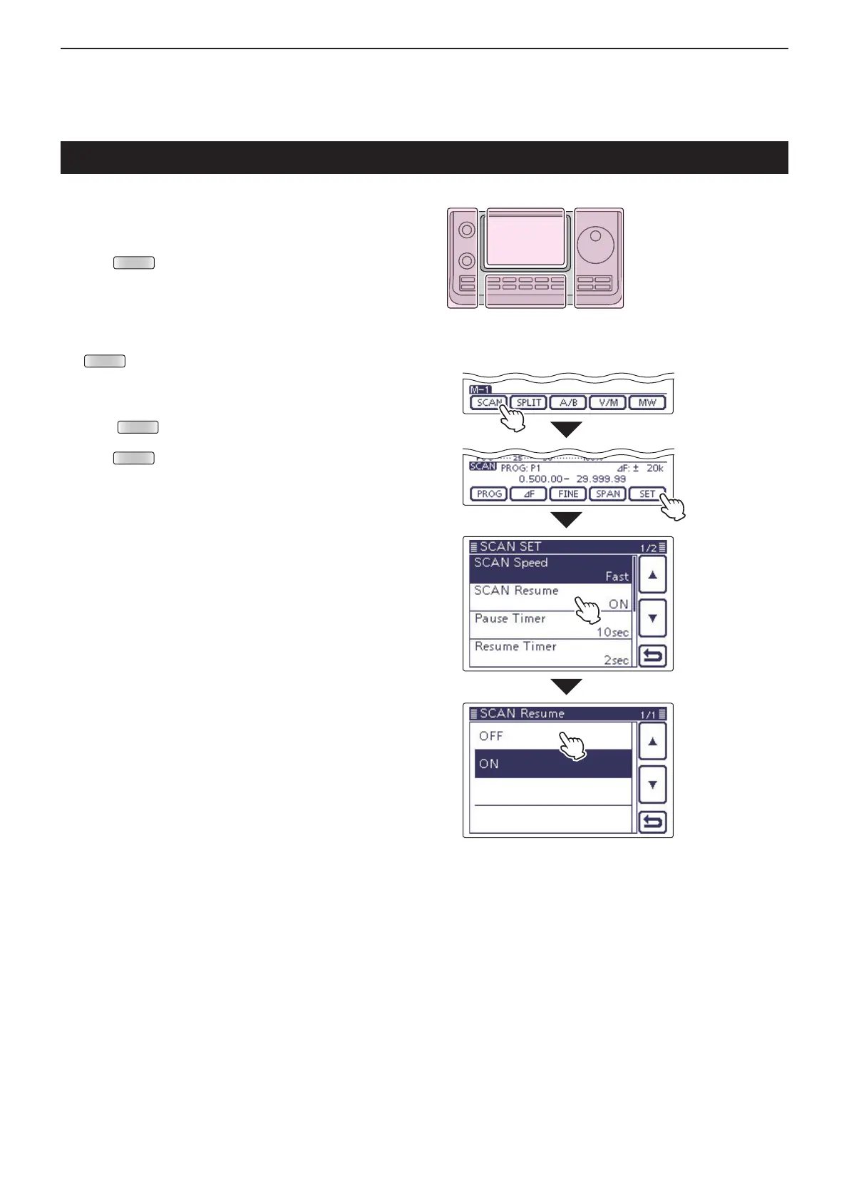 Touch [SET]( e D) to display the “SCAN SET” screen.