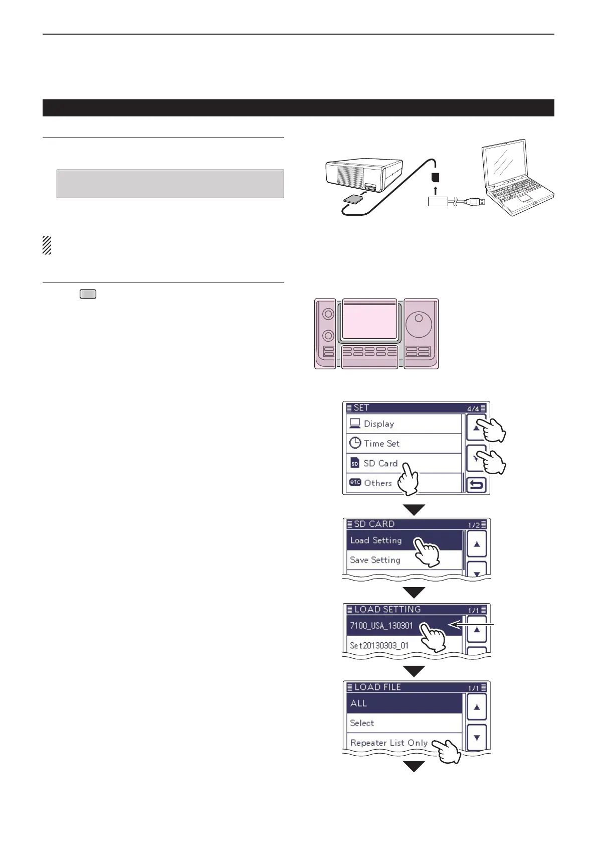 i Touch the “Load Setting” item of the “SD Card” Set