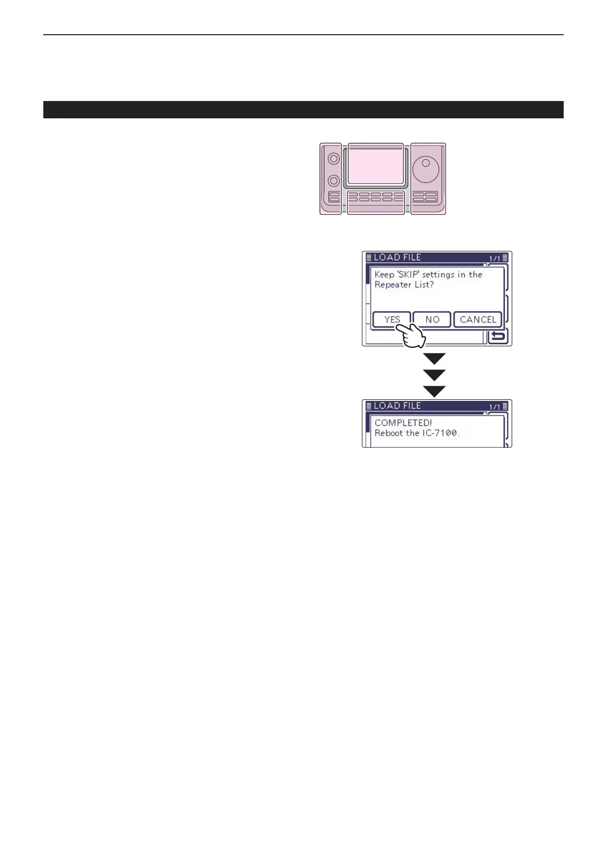 To complete the loading, reboot the transceiver.