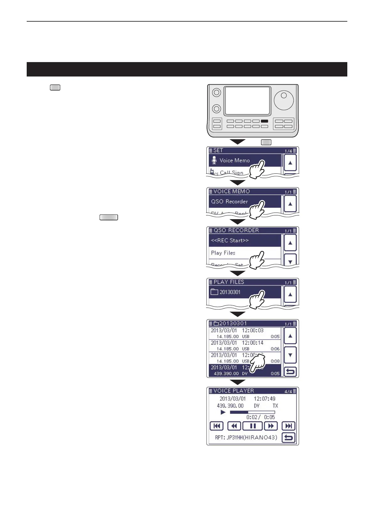 ( Voice Memo > QSO Recorder > Play Files)