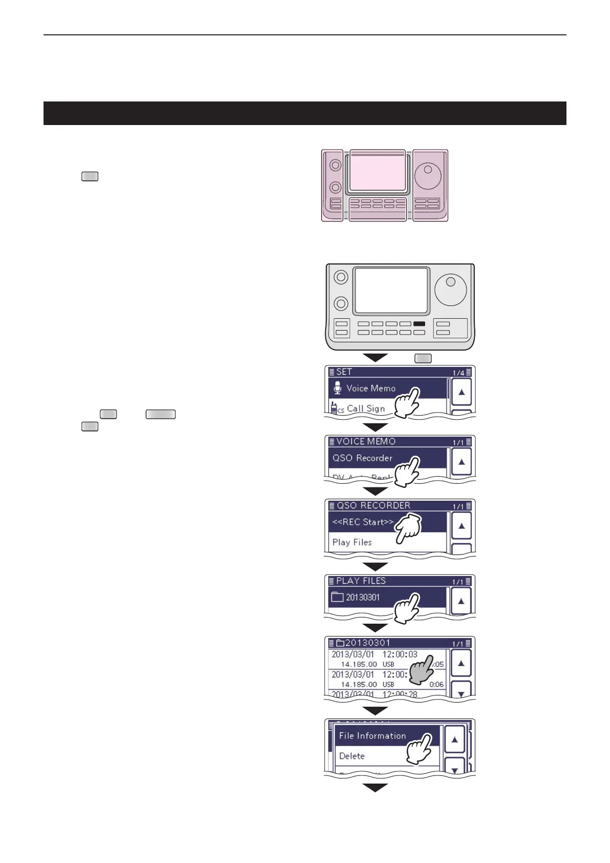 The transceiver can display the recorded file’s frequen-