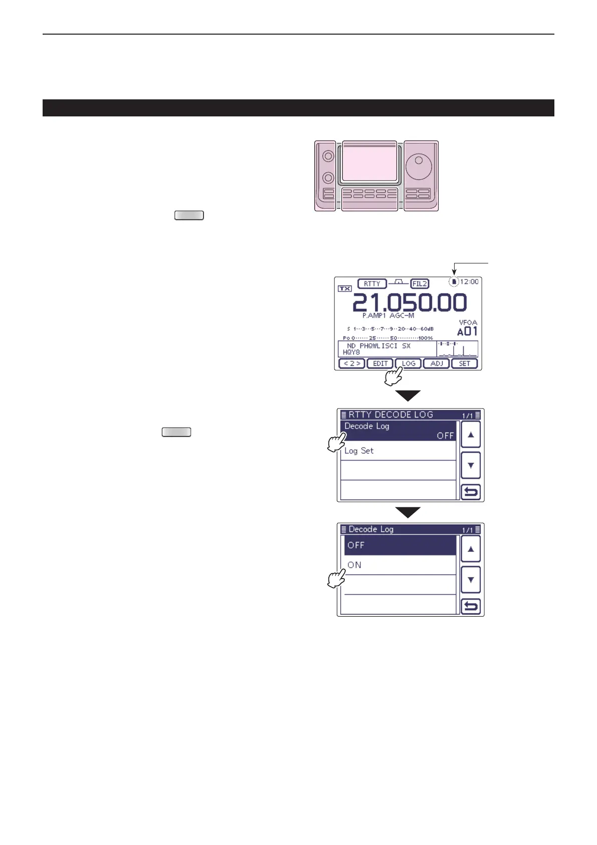 Touch [LOG]( r D) to display the “RTTY DECODE