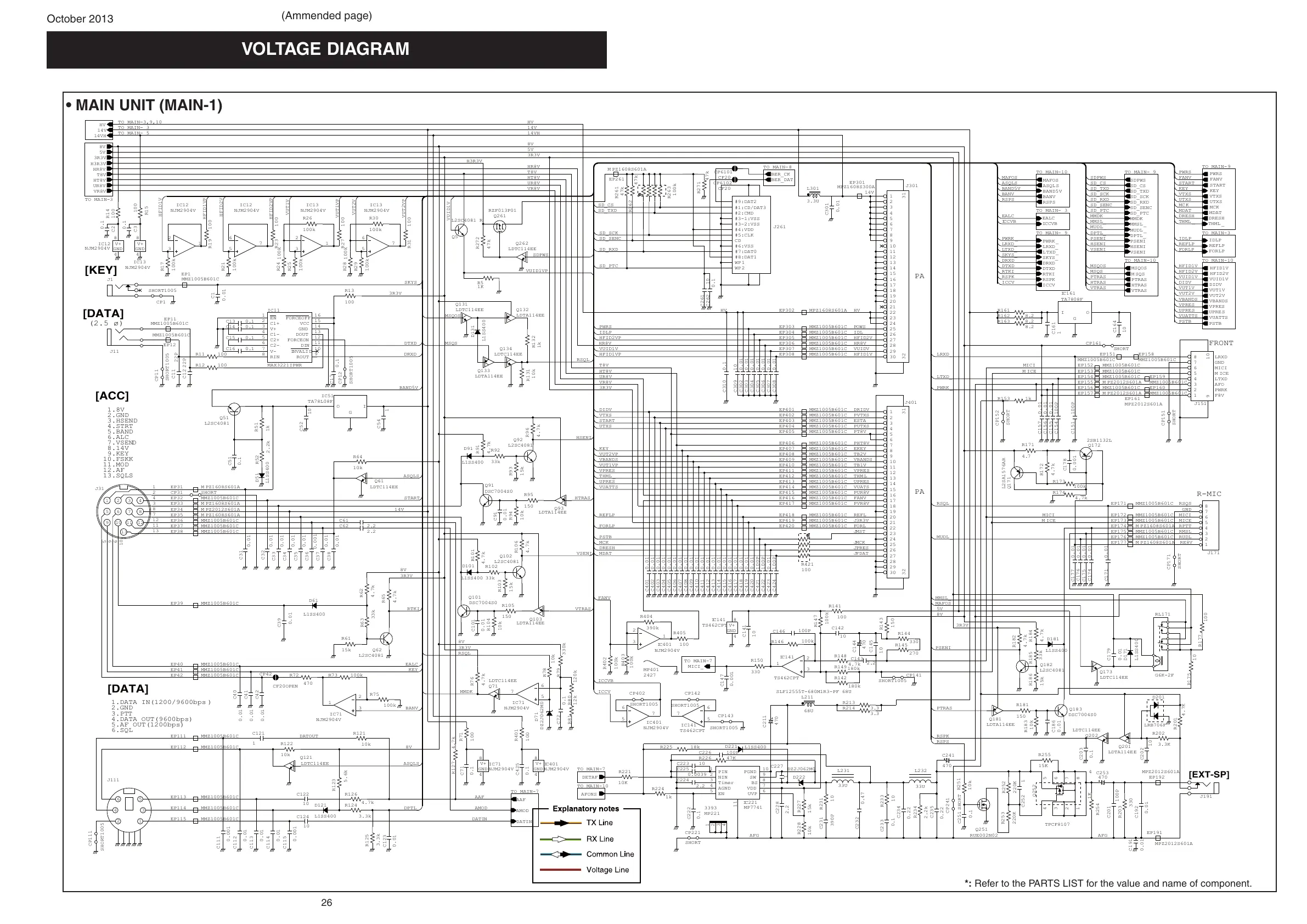 *: Refer to the PARTS LIST for the value and name of component.