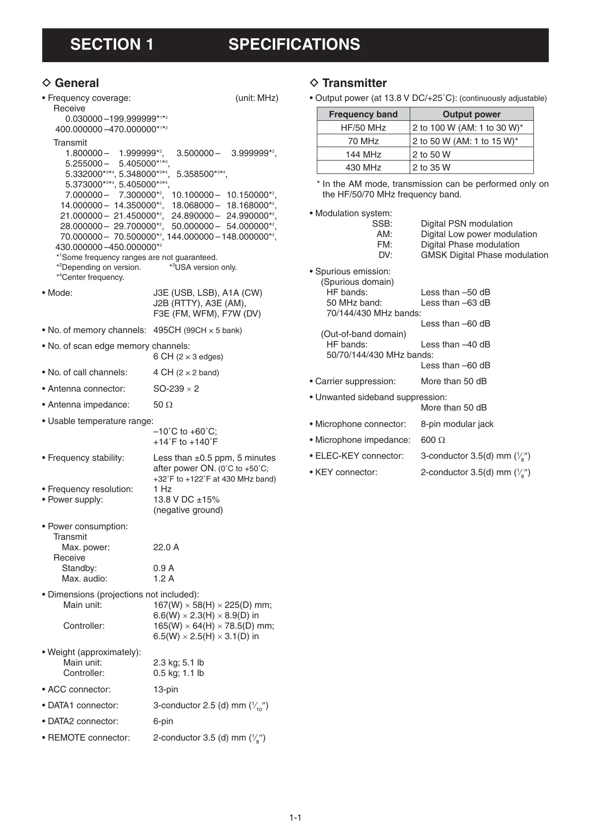HF/50 MHz 2 to 100 W (AM: 1 to 30 W)*