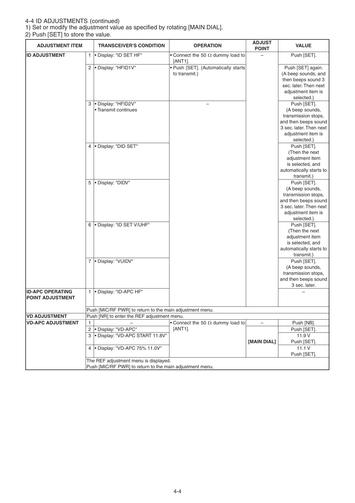 ID ADJUSTMENT 1 • Display: "ID SET HF" • Connect the 50