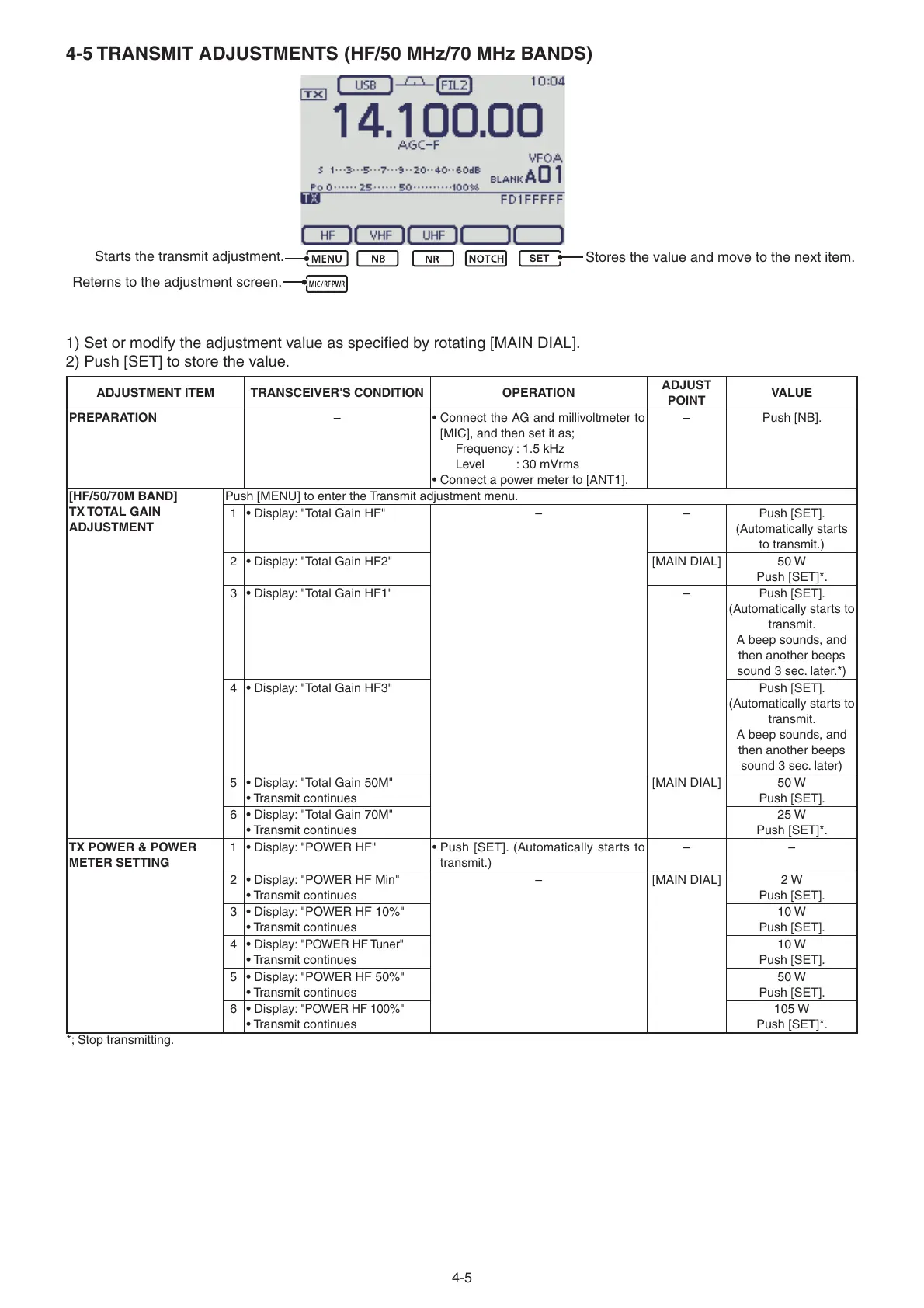 4-5 TRANSMIT ADJUSTMENTS (HF/50 MHz/70 MHz BANDS)