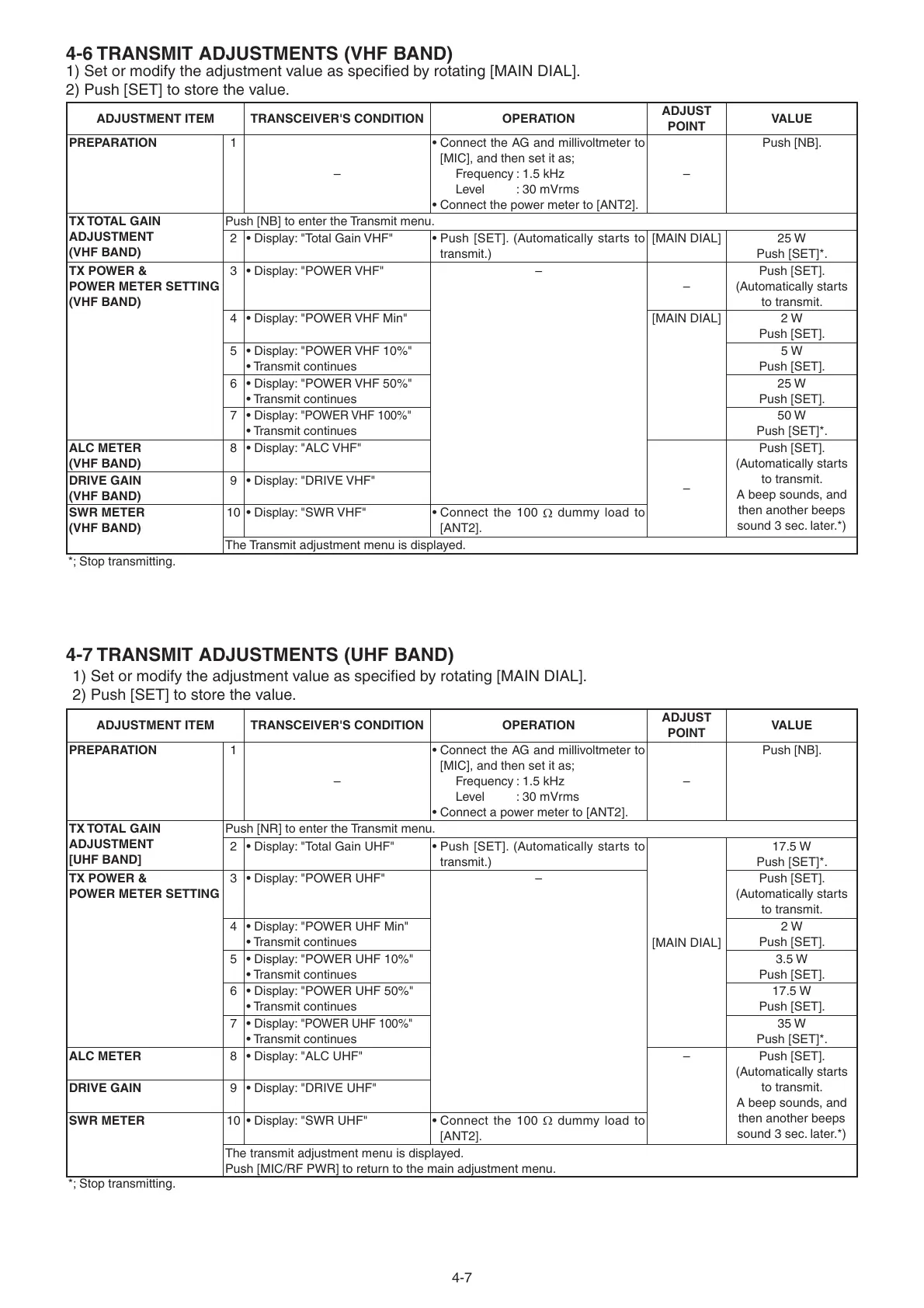 4-6 TRANSMIT ADJUSTMENTS (VHF BAND)