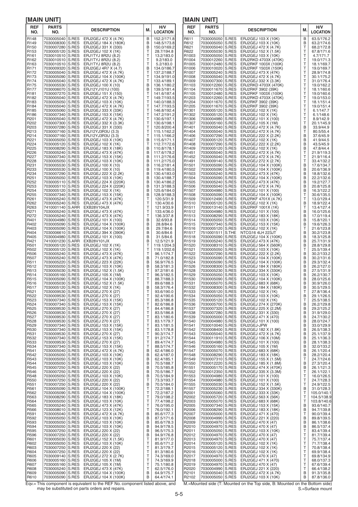 M.=Mounted side (T: Mounted on the Top side, B: Mounted on the Bottom side)