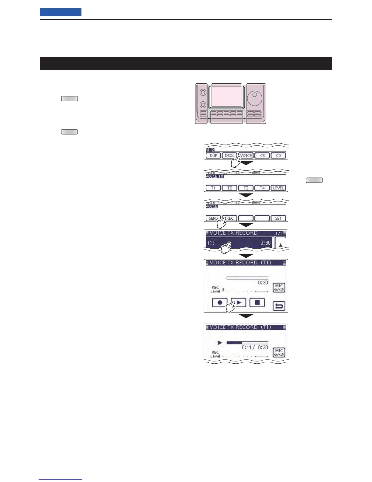 • The “VOICE TX RECORD (T1)” screen is displayed,