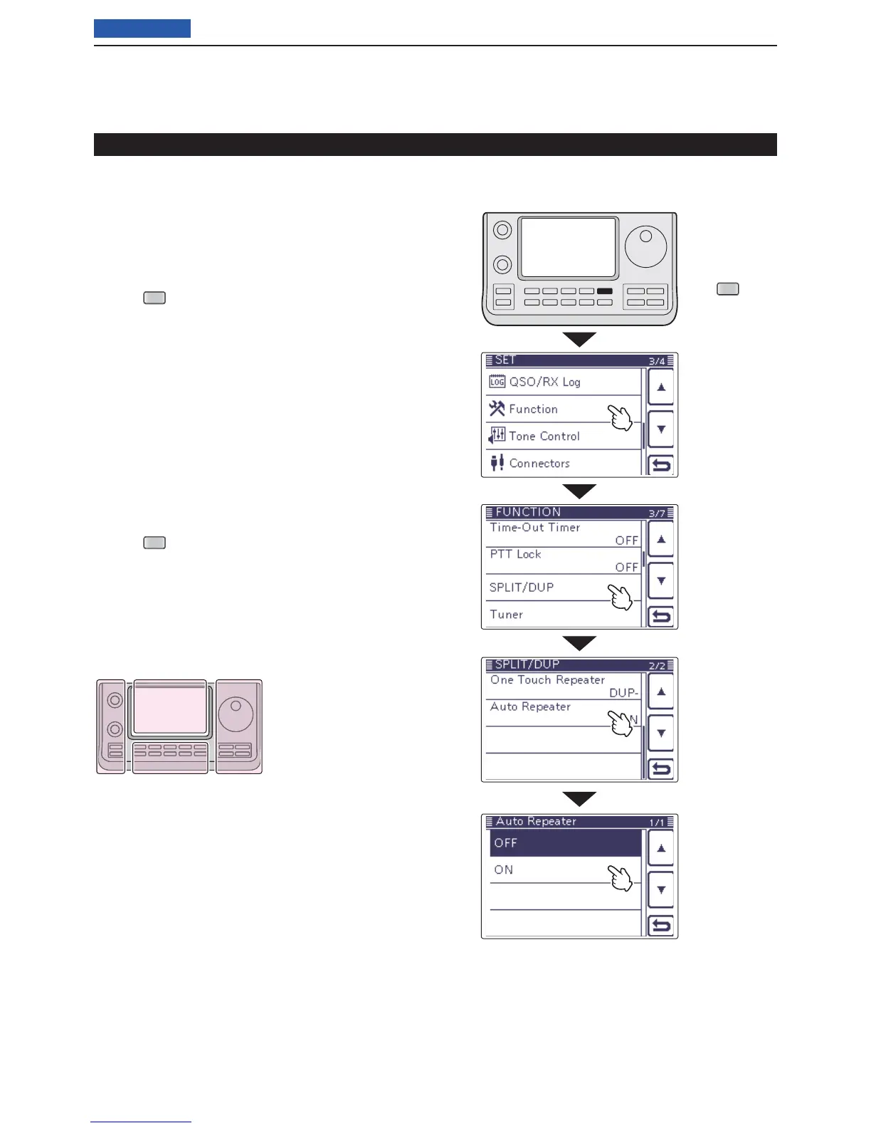 • “OFF” Auto repeater function is turned OFF.