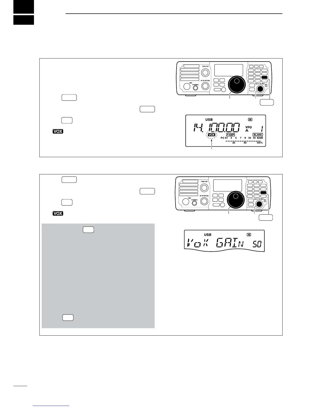 The VOX gain, ANTI-VOX and VOX delay can be set