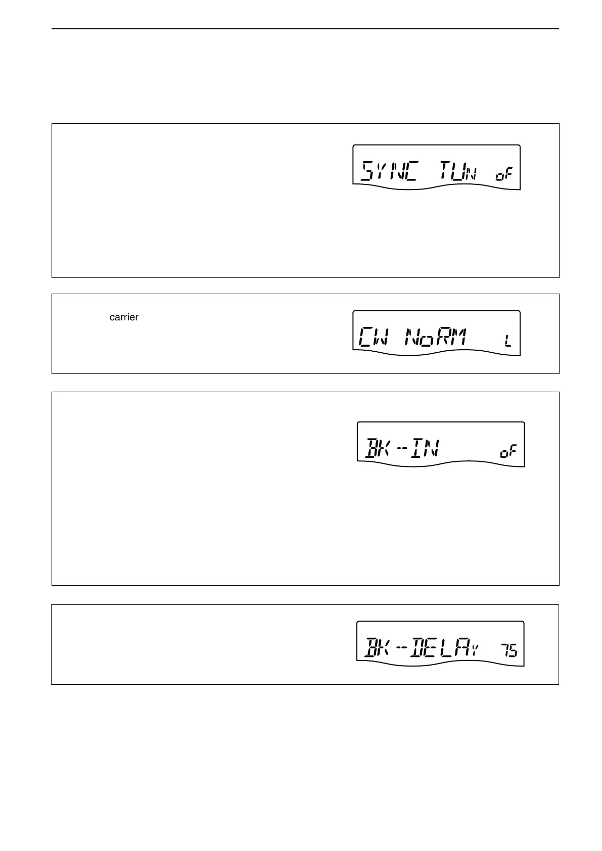 Adjusts break-in delay time for CW semi break-in