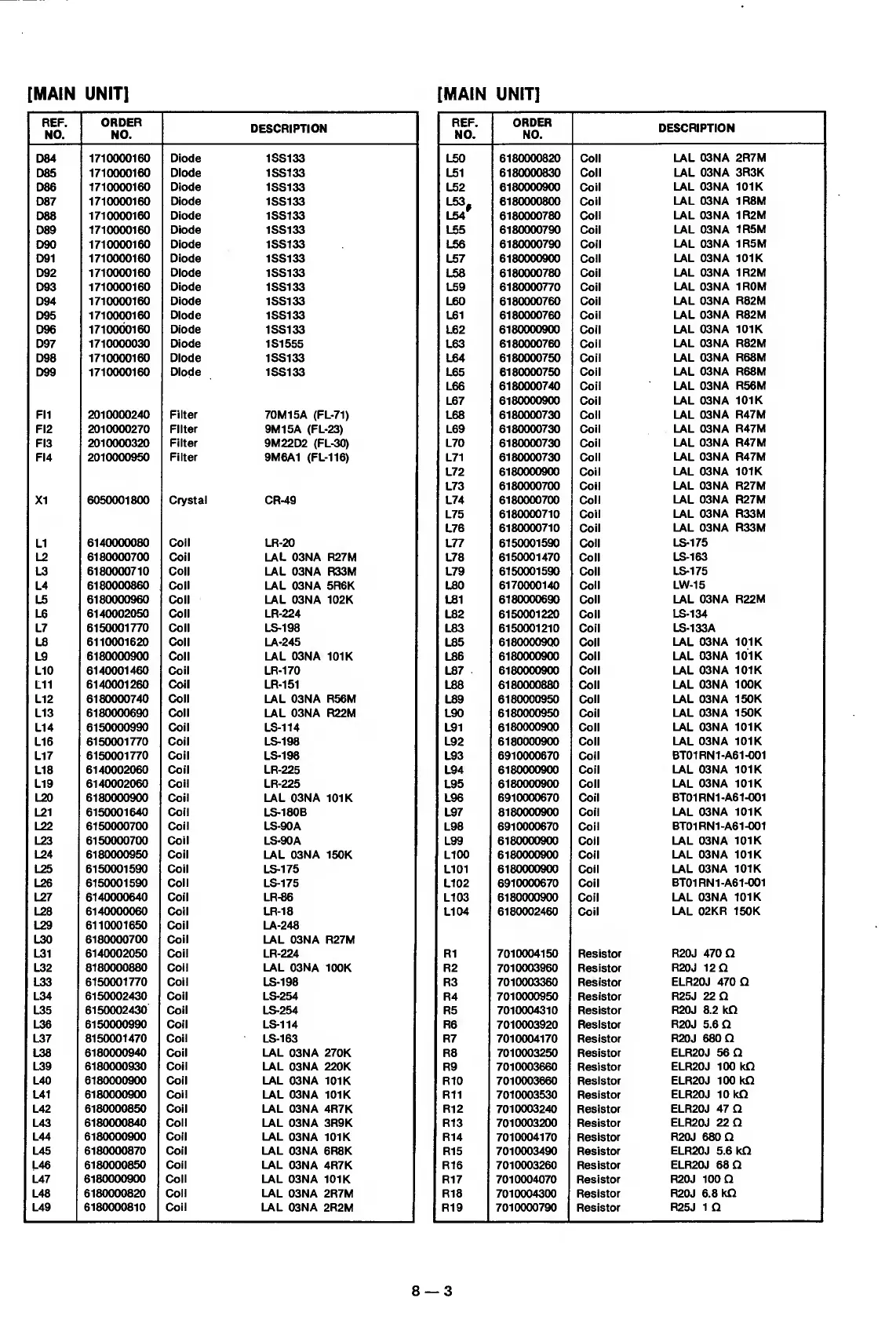 1710000160 Diode 1SS133 L55 6180000790 Coil