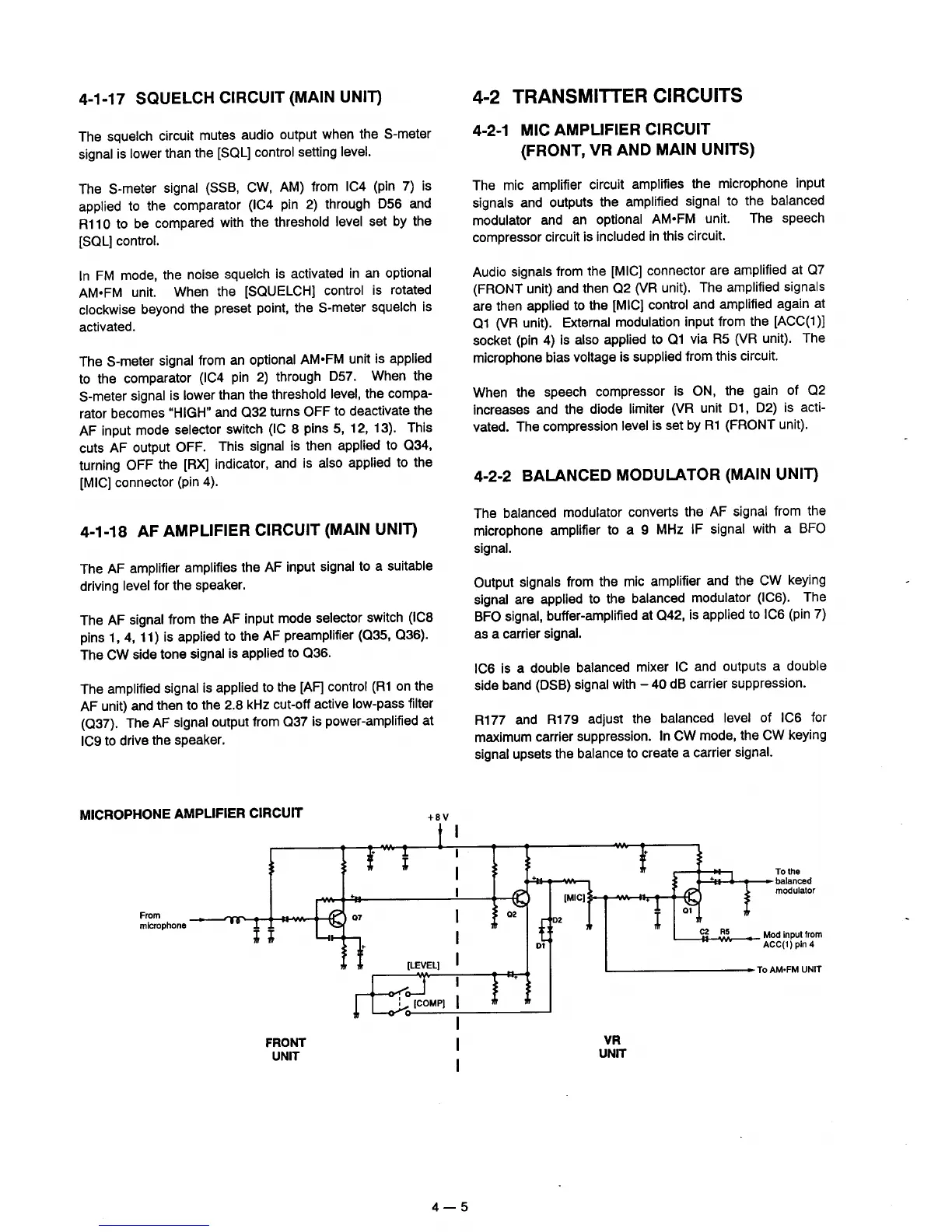 Icom IC-728 - Section 4: IC-728 Receiver Control and Audio Circuits; AGC, Squelch, and S-Meter Circuits