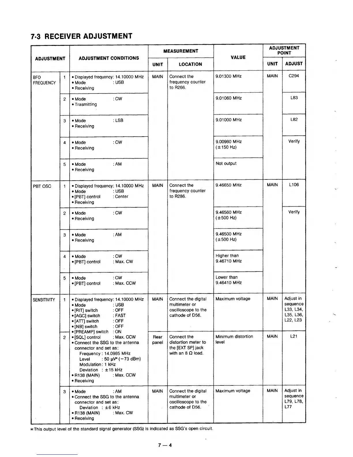 Icom IC-728 - Section 7: IC-728 Receiver Adjustment Procedures; BFO, PBT, and Sensitivity Tuning