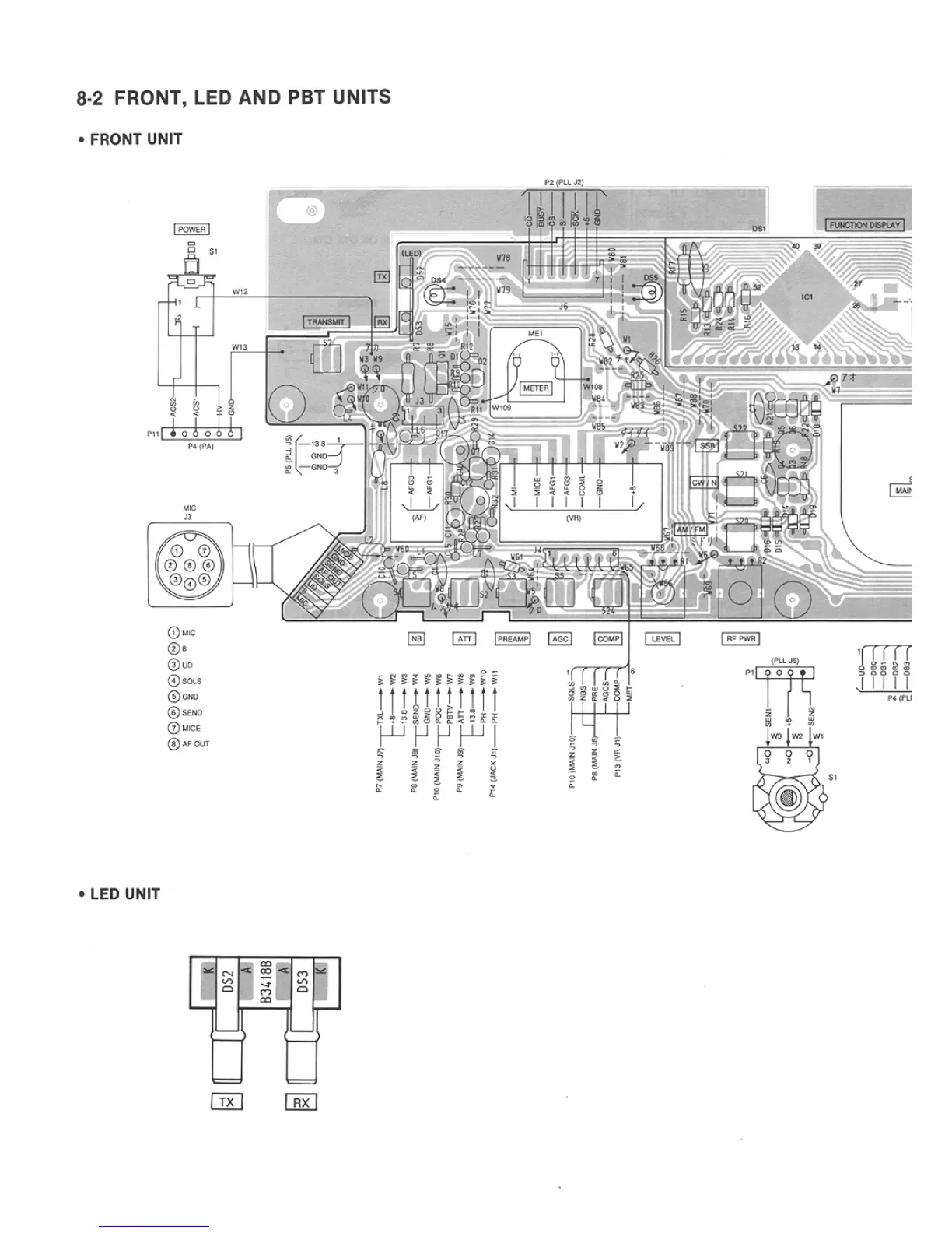 Icom IC-728 - Section 8: IC-728 Front, LED, and PBT Unit Layouts; Front, LED, and PBT Unit Layouts