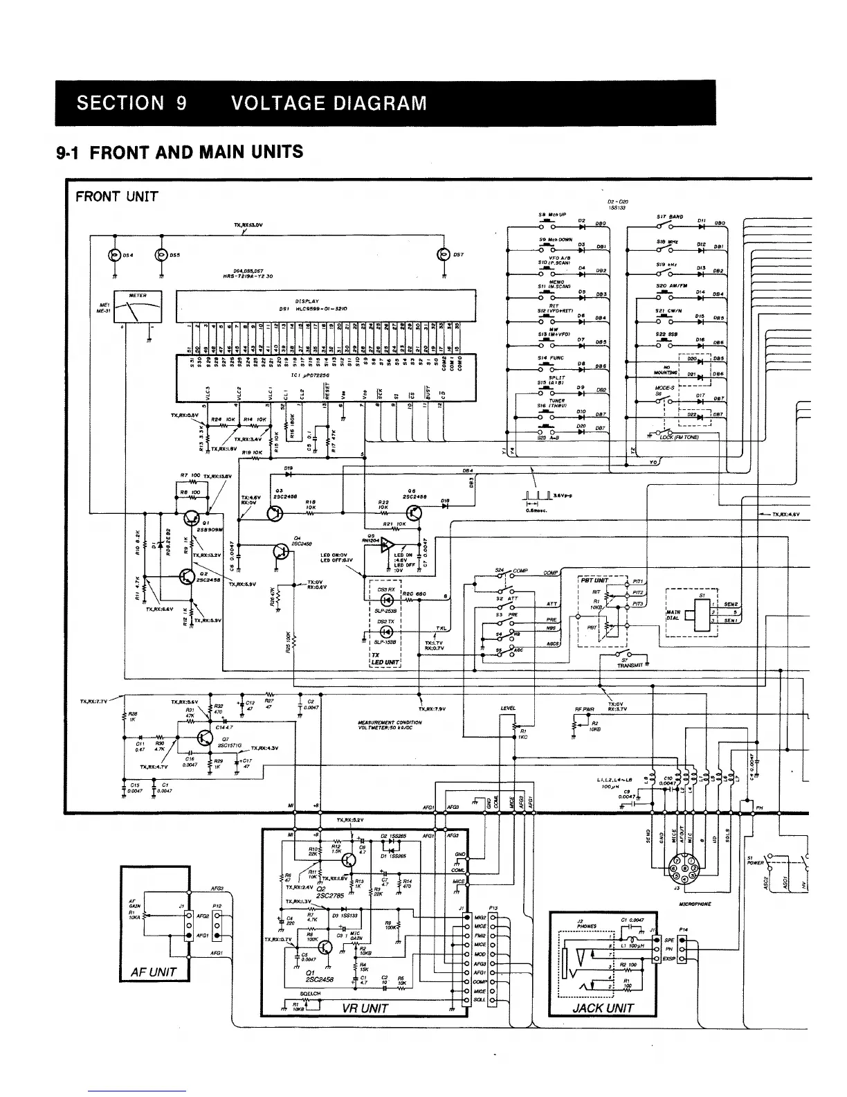 Icom IC-728 - Section 9: IC-728 Voltage Diagram Overview; Front and Main Unit Voltage Diagram