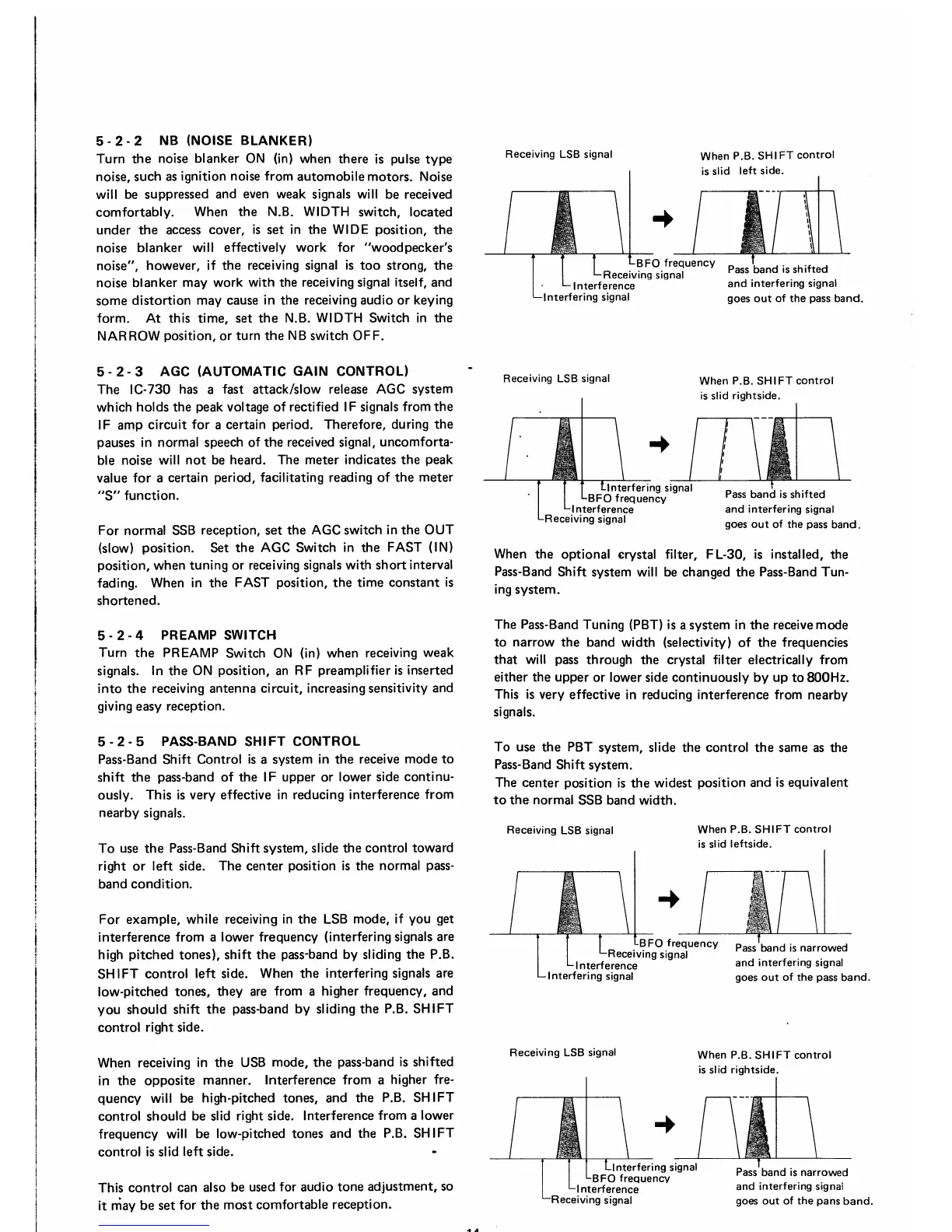 Icom IC-730 - NB (Noise Blanker); AGC (Automatic Gain Control); Preamp Switch; Pass-Band Shift Control