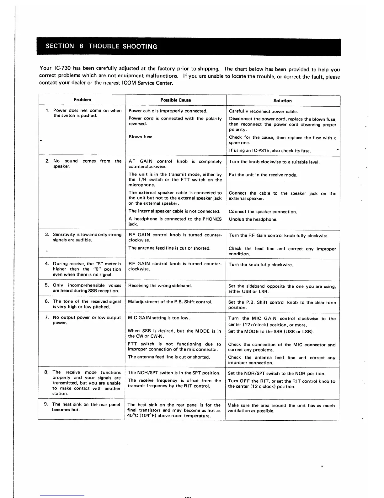 Icom IC-730 - ICOM IC-730 Troubleshooting Guide; COMMON PROBLEMS AND SOLUTIONS