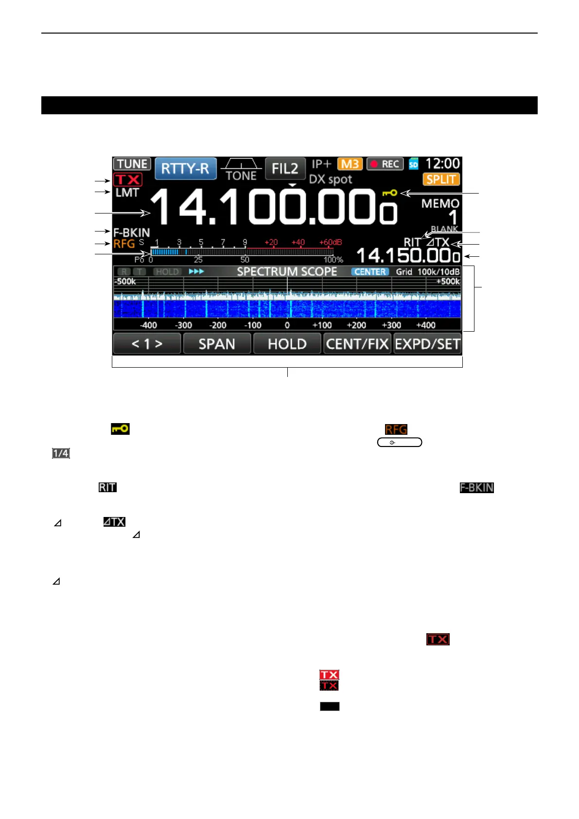 Displays the shift offset of the RIT (p. 4-2) or
