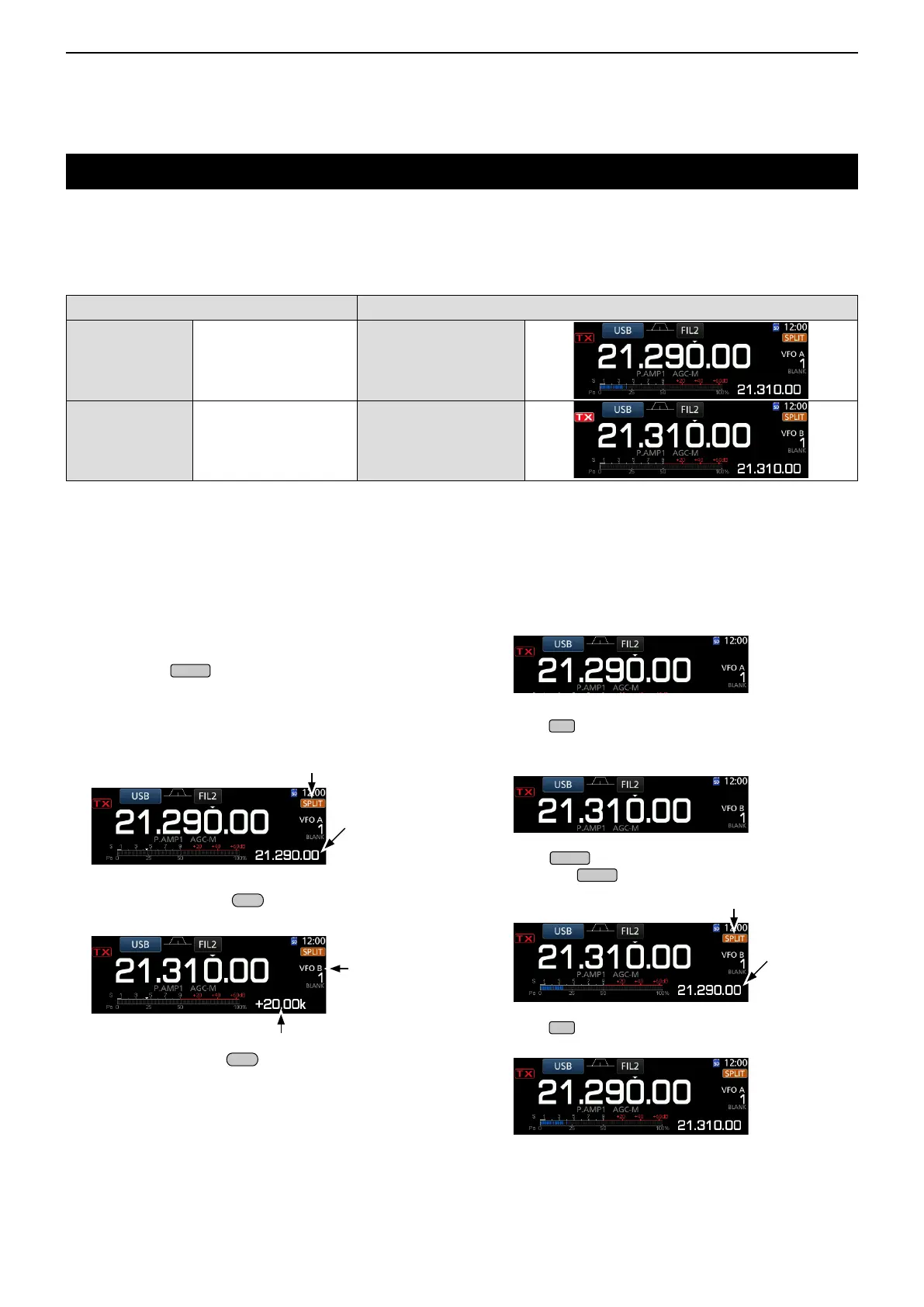 displayed VFO, and activate the Split function.