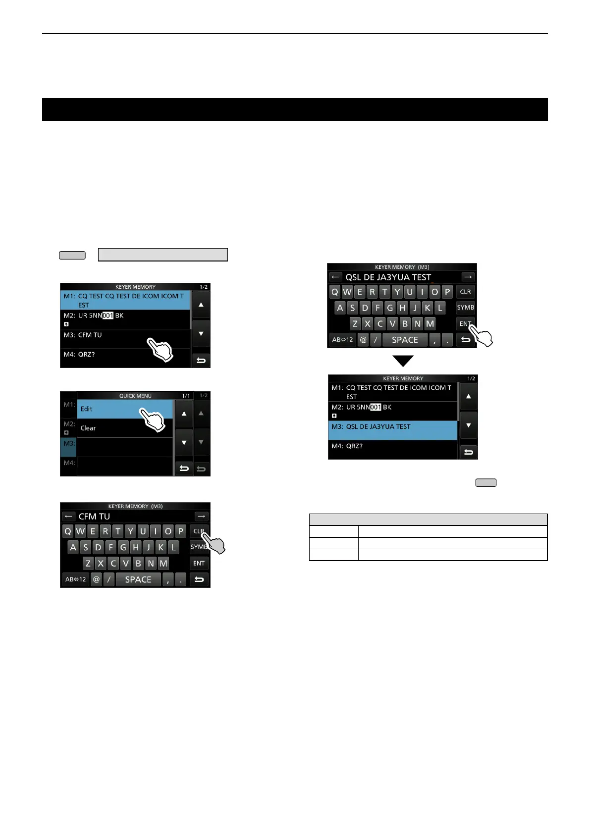 (Example: Entering “QSL TU DE JA3YUA TEST” to M3)