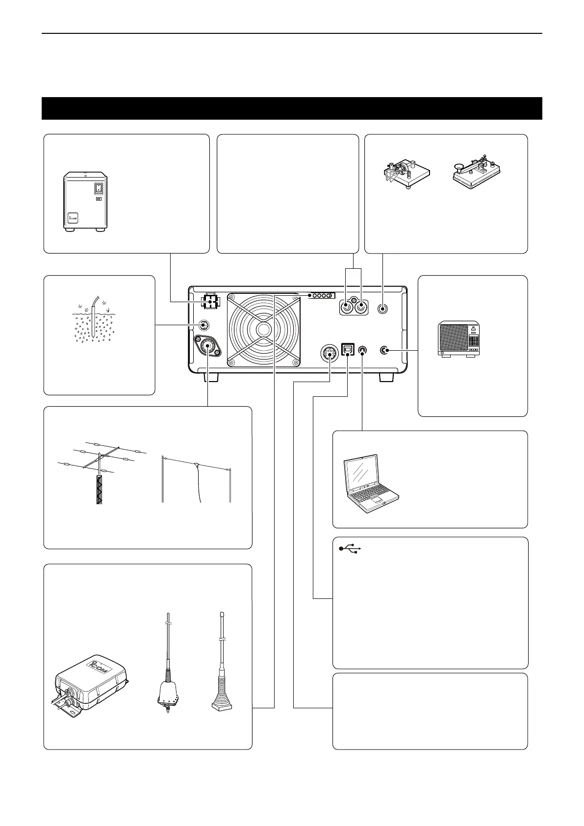 Connect a 50 Ω antenna for the HF, 50/70 MHz