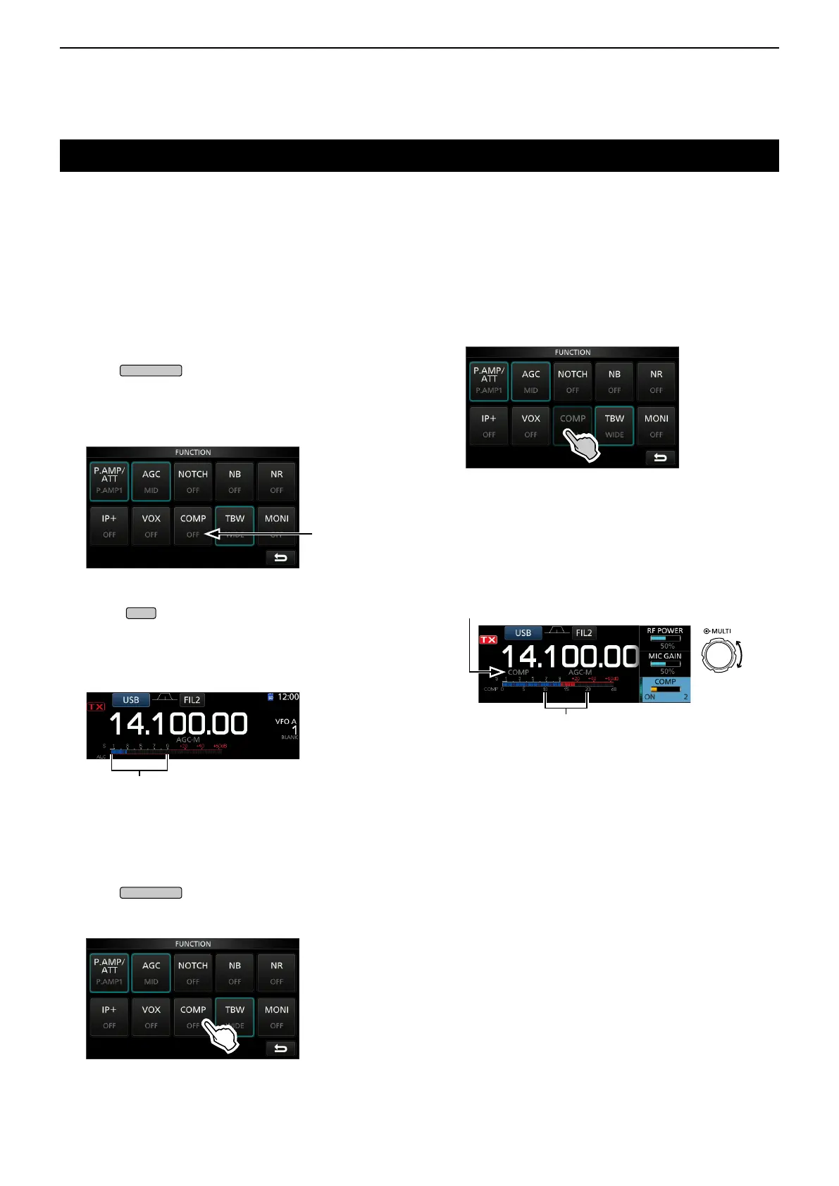 6. Adjust the MIC GAIN (p. 3-11) to where the ALC