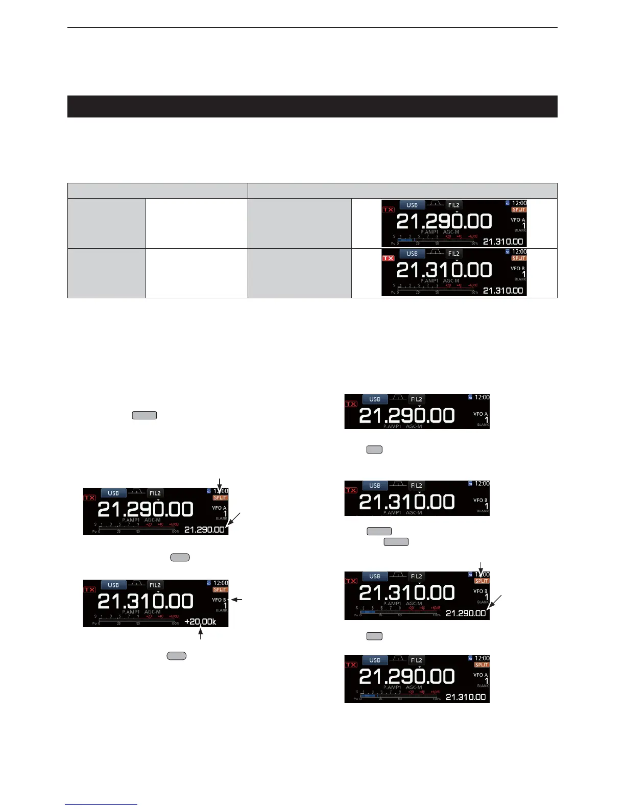 displayed VFO, and activate the Split function.