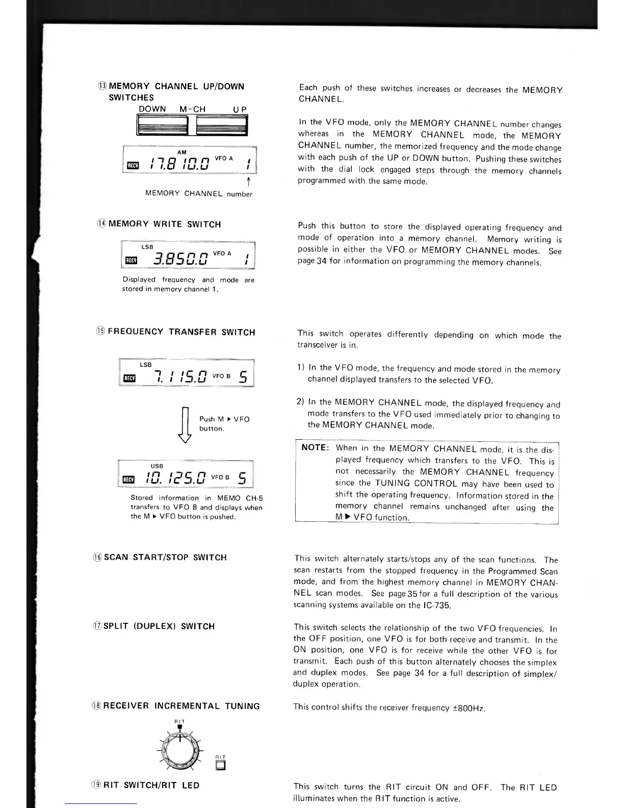 In the VFO mode, only the MEMORY CHANNEL number changes