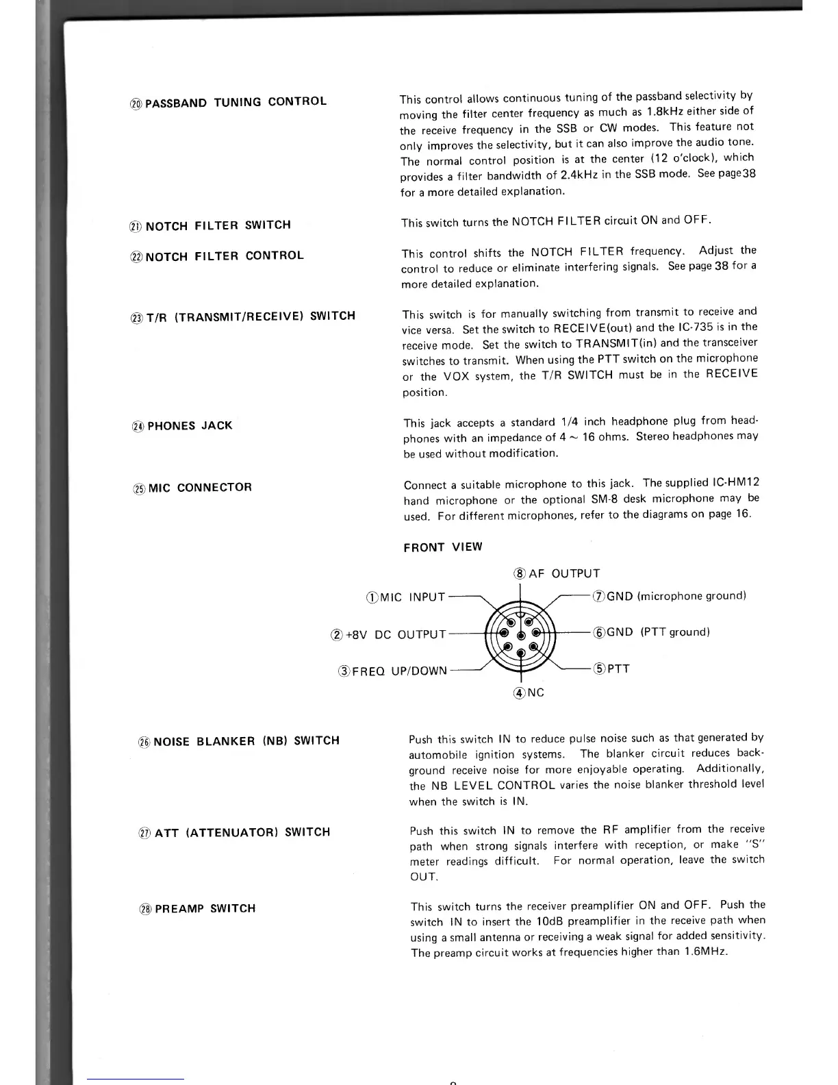 Connect a suitable microphone to this jack. The supplied IC-HM12