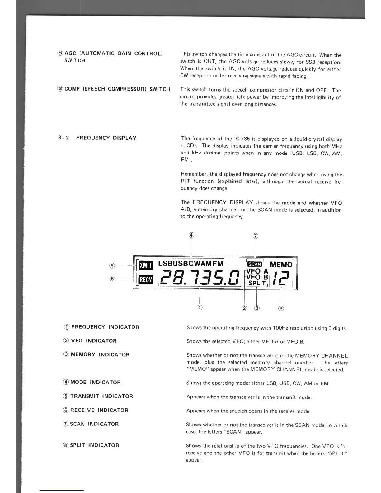The frequency of the IC-735 is displayed on a liquid-crystal display