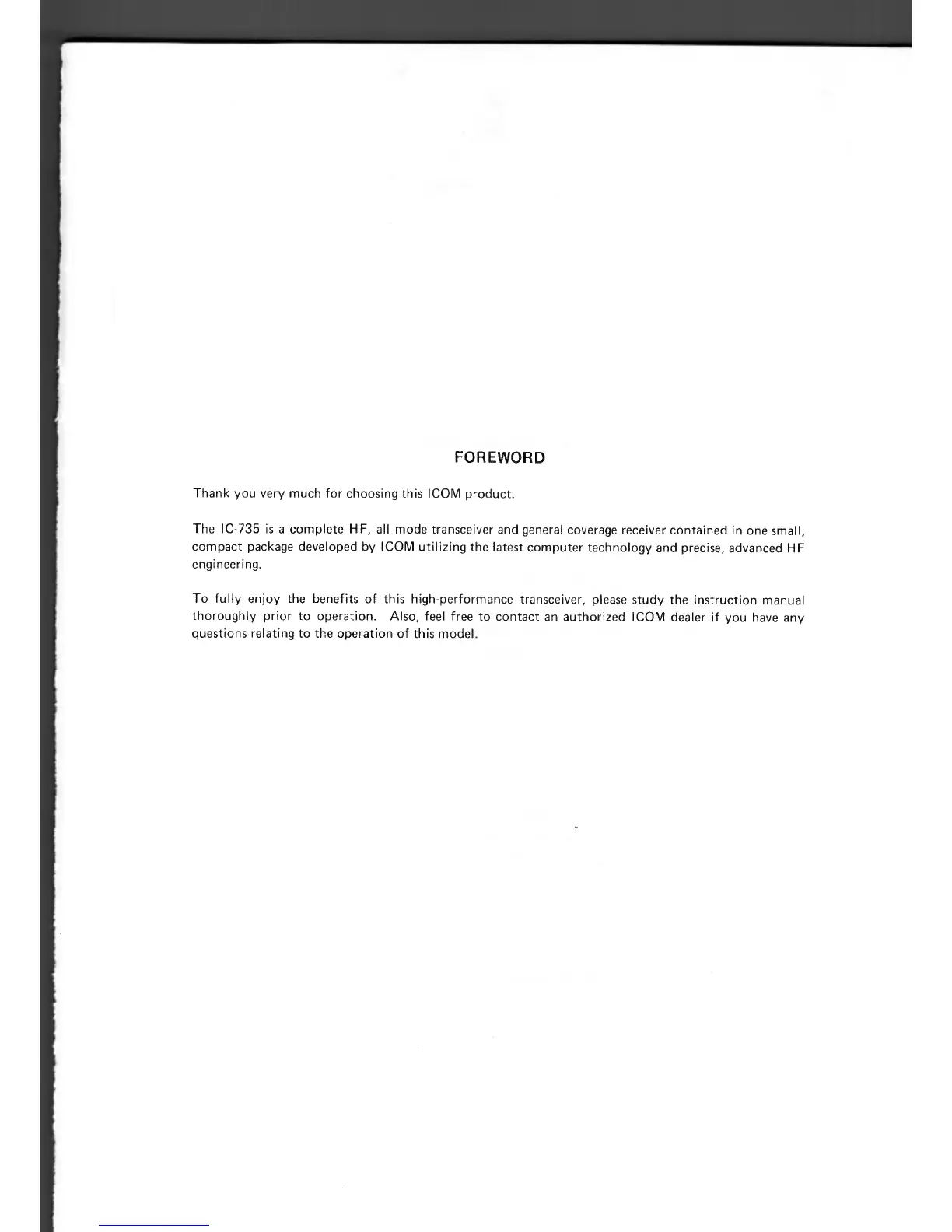 thoroughly prior to operation. Also, feel free to contact an authorized ICOM dealer if you have any